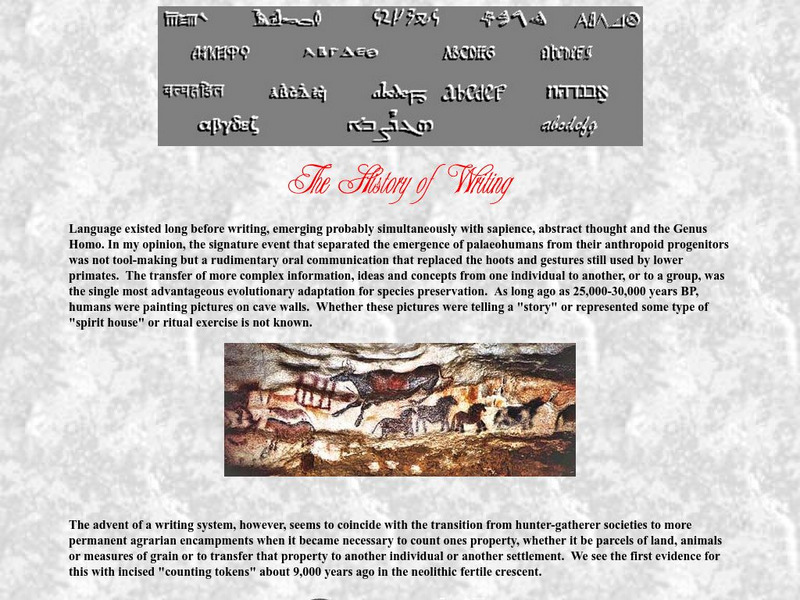 This explanation of the history of writing traces writing from the use of "Counting tokens," to the development of the Roman alphabet. The pictures of how writing has progressed over time is very interesting and helpful.