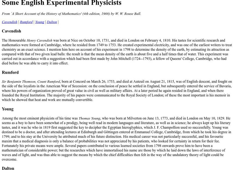 This page of brief biographies taken from "A Short Account of the History of Mathematics," includes a paragraph on the life and work of Gabriel Cramer of "Cramer's Rule," fame.