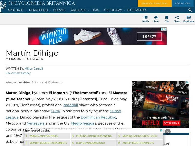 Encyclopedia Britannica: Guide to Black History: Martin Dihigo