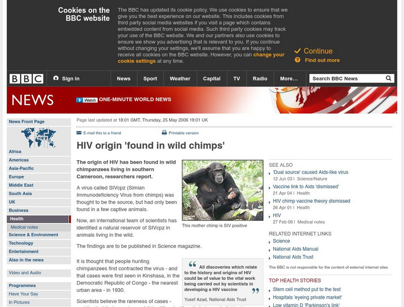 Bbc News: Hiv Origin "Found in Wild Chimps"
