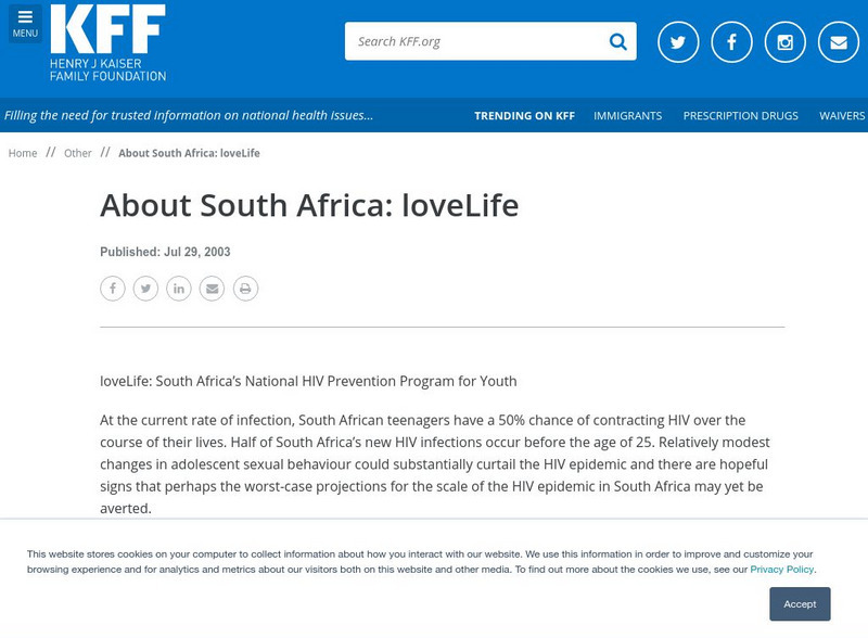 Kaiser Family Foundation: South Africa: About South Africa: Love Life