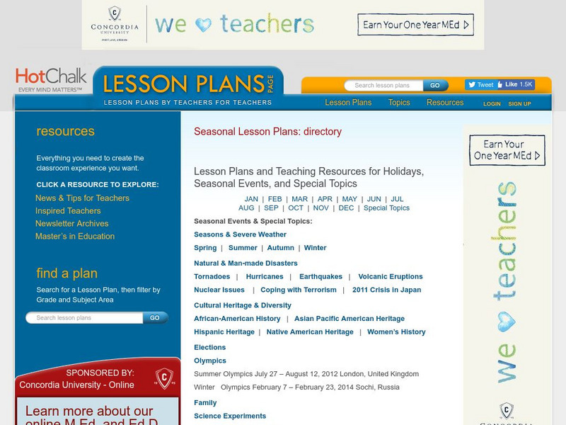 Hot Chalk: Lesson Plans Page: Themed Lesson Plans