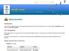In this making questions worksheet, students read statements that are turned into questions and questions starting with "w" words. Students then click on "continue with the first exercise" at the bottom of the page to make 10 yes and no...