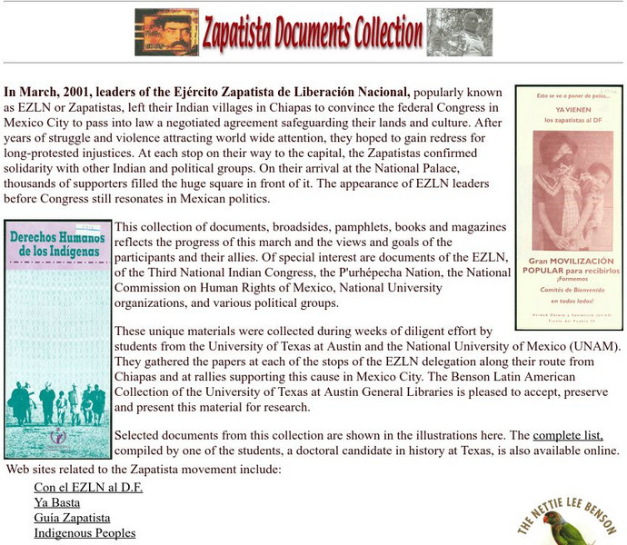 This collection of documents, broadsides, pamphlets, books and magazines reflects the progress if the Zapatistas to get the government to pass into law a negotiated agreement safeguarding their lands and culture.