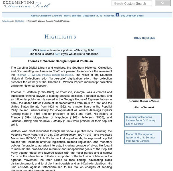 Documenting the American South: Thomas E. Watson: Georgia Populist Politician
