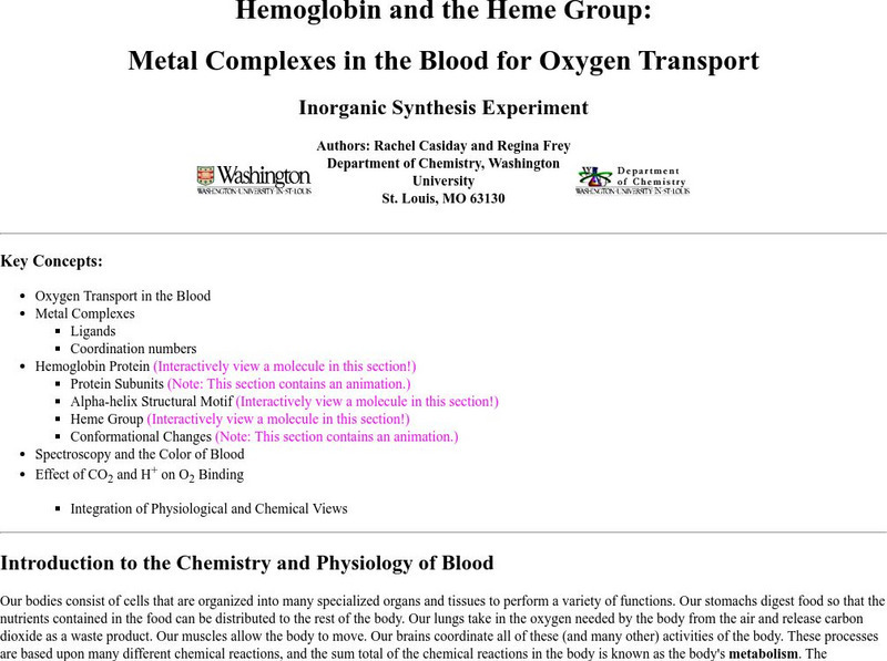 This site from the Department of Chemistry at the Washington University provides a deetailed study of the role of hemoglobin in blood physiology. The article is somewhat in-depth, complete with pictures, charts, and a bibliography.