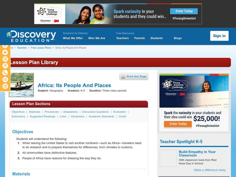 A very comprehensive lesson plan that helps prepare students for a trip to Africa taking into consideration climate, customs, geography, and language.