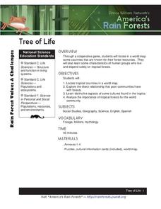 Young scholars explore the importance of the tropical rain forest in different cultures. Through a cooperative game, they locate countries that are known for their forest resources. Students discuss the similarities and differences of...