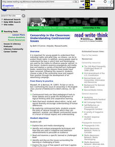 Students examine propaganda and media bias and explore a variety of banned and challenged books. Following this, students choose a side of the censorship issue and support their position by developing an ad campaign about the banned book...
