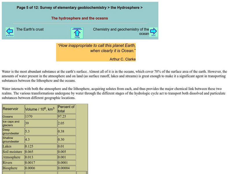 Chem1 Virtual Textbook: The Hydrosphere and the Oceans