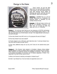 In this energy use learning exercise, students read about kilowatts and solve 2 problems. They find the costs to run certain electrical items for a given amount of time and they determine the electricity consumption of an accelerator...