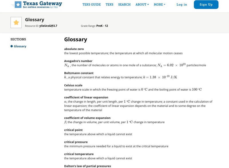 Texas Gateway: Temperature, Kinetic Theory, and the Gas Laws: Glossary