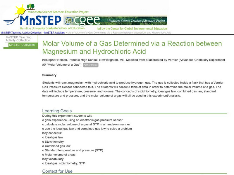 Serc: Molar Volume of a Gas Determined via a Reaction