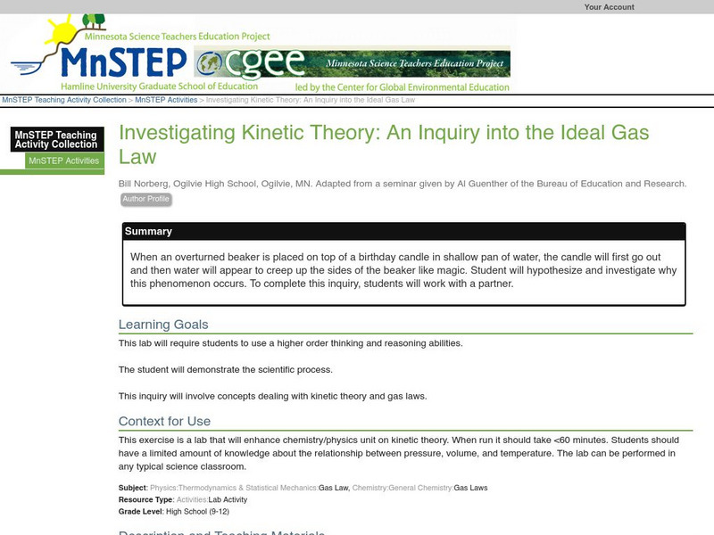 Serc: Investigating Kinetic Theory: An Inquiry Into the Ideal Gas Law