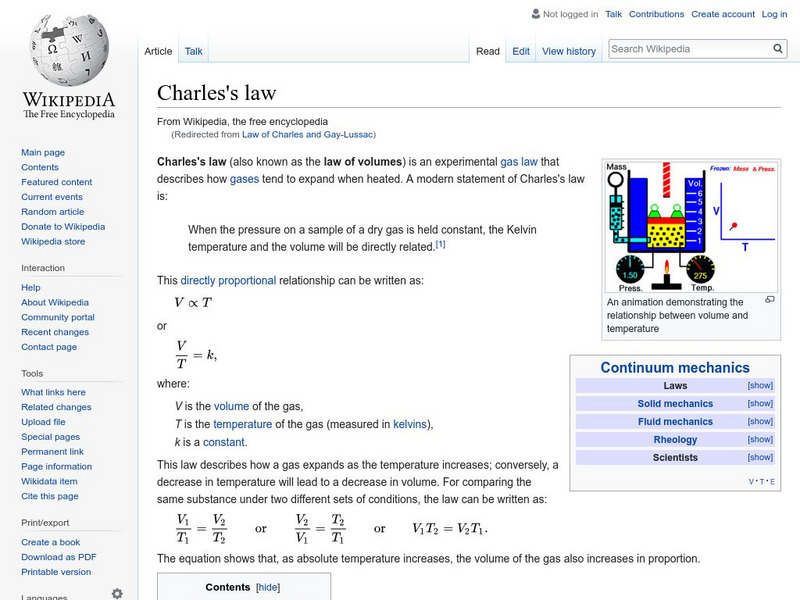 Wikipedia provides information on the Law of Charles and Gay-Lussac, a law that relates the volume and temperature of an ideal gas held at a constant pressure.