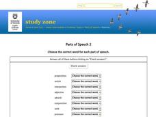 Prepositions, verb, and interjections! Have your class take this online quiz and see how well they know the parts of speech. There are 9 parts of speech to identify.