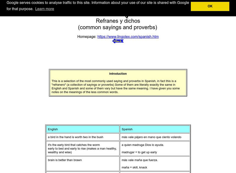 Lingolex.com: Refranes Y Dichos (Common Sayings and Proverbs)