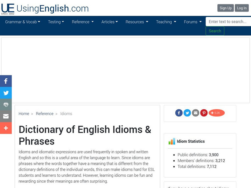 Comprehensive collection of over 1,500 English idioms and idiomatic expressions, explained in simple terms. Contains examples from both U.S. and U.K. English.