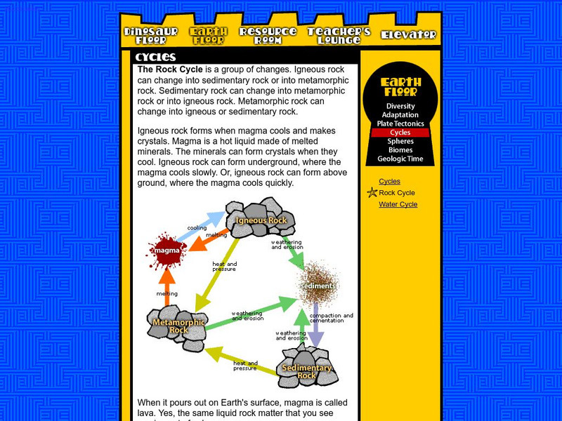 This tutorial explains the rock cycle--from beginning to end! It is full of activities, assessments, games, slideshows and all kinds of interactive material. Learn what rocks are made of and how they change from one form to another....