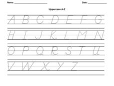 Guide your students through the uppercase alphabet with this basic worksheet, which provides dotted letters to illustrate proper line spacing and height. Students can work on this activity over and over to reinforce strong printing skills.