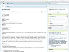 As a class, 7th graders observe examples of brainstorming and then complete brainstorming worksheets themselves. They compose and describe planning strategies. Prior to writing an essay, they identify the purpose and the audience.
