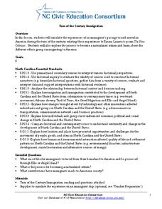 Learners research immigration to find out why people from Europe, Asia, and elsewhere left their homelands during the late 19th and early 20th centuries. Then they determine what living conditions were like when immigrants first settled...