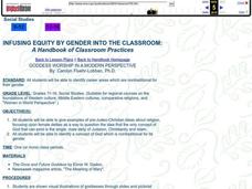 Students consider gender roles and religion. In this gender equality lesson plan, students compare and contrast the idea of patriarchal and matriarchal religious practices and how they impacted society. Students will pose questions and...