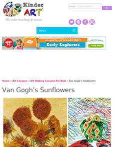 Learners create sunflower paintings using pastels, pencils, and construction paper in this Art lesson for the early-elementary classroom. Emphasis is placed on the artwork of Vincent van Gogh and the book Camille and the Sunflowers by...
