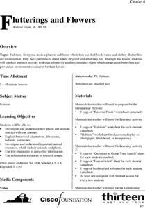 Fourth graders investigate the significance of natural resources and the habitats of butterflies. They create a list of their own favorite foods, then watch a video about habitats. Students identify things in the video that animals and...