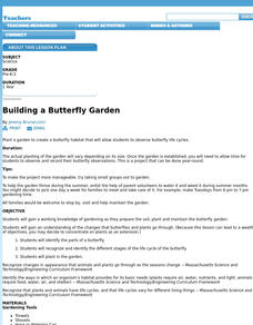 Students examine the habitat and life cycle of a butterfly. In this early childhood lesson plan, students identify the parts of a butterfly, as well as the stages of the butterfly life cycle. Students also plant a garden in which they...