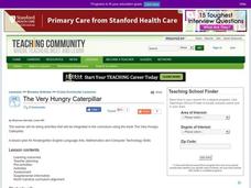 Read the story, The Very Hungry Caterpillar, and complete activities from multiple subjects. Make a mural, create a class graph, discuss the life cycle of a butterfly, research information about butterflies on the Internet and make...