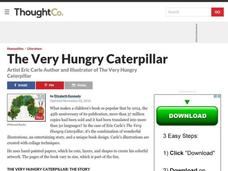 The Very Hungry Caterpillar is the inspiration for this project-based learning activity. Kindergartners create a lifecycle chart for a butterfly with four sections: egg, caterpillar, pupa, and butterfly. It is a three-dimensional...