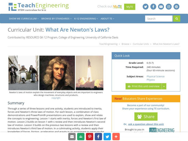 [Free Registration/Login may be required to access all resource tools.] Apply mathematic equations to determine the effects of forces on objects as well as the law of inertia.