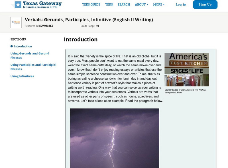 Texas Gateway: Verbals: Gerunds, Participles, Infinitive (English Ii Writing)