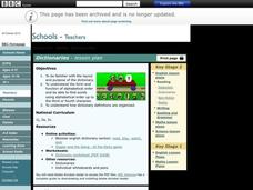 Students understand the way the dictionary is laid out as well as the purpose for why people use dictionaries. In this language arts instructional activity, students recognize the need for alphabetical order and are able to find words...