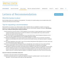 Letters of recommendation play a key role in the college admissions process. A handout on the topic, part of a series on specific writing assignments, helps applicants through the process of choosing recommenders and requesting a letter....