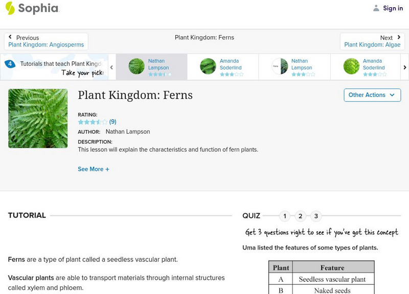 Sophia: Plant Kingdom: Ferns: Lesson 1