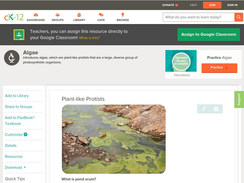 [Free Registration/Login may be required to access all resource tools.] Plant-like protists are known as algae. They are a large and diverse group. Plant-like protists are autotrophs. This means that they produce their own food. They...