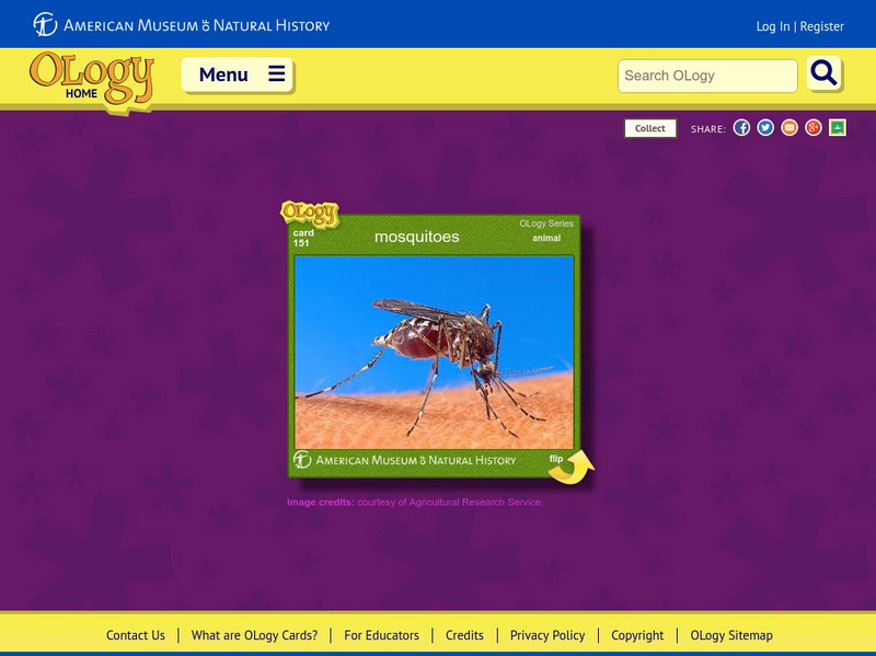 Turn over this interactive OLogy card and start learning bite-size pieces of useful information about mosquitoes, such as their diet and physical characteristics.