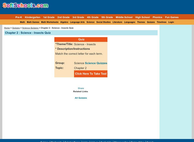 Take an interactive quiz over insects. After completing the quiz, check your score, and then revisit any incorrect question for further review