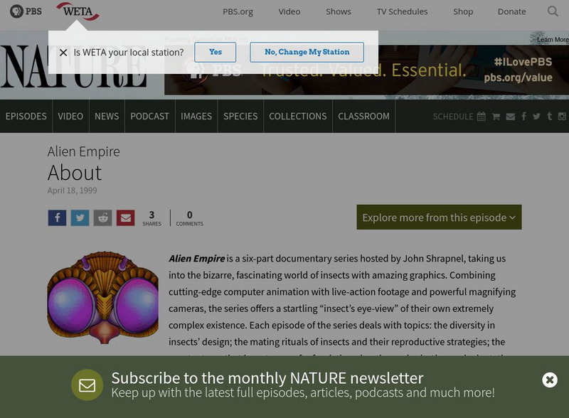 Outstanding site that compliments an insect series on PBS. Interactive presentations include bee anatomy and honeybee hives. Includes interactive puzzles, teacher's guides, and formats for making insect masks.