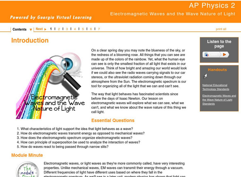 Ga Virtual Learning: Electromagnetic Waves and the Wave Nature of Light