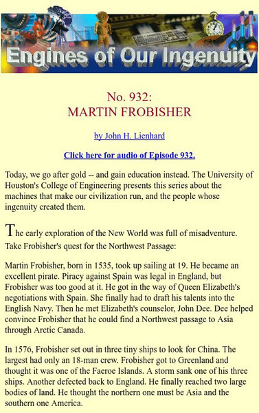 University of Houston: Engines of Our Ingenuity: No. 932: Martin Frobisher
