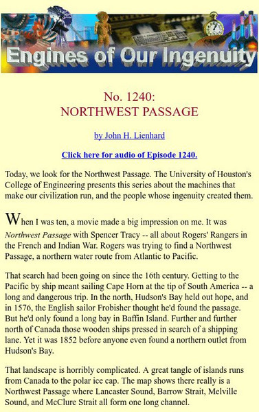 University of Houston: Engines of Our Ingenuity: No. 1240: Northwest Passage