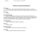 Students identify properties of parallelograms. In this geometry lesson plan, students label polygons as parallelogram or not. They define and label the properties of a kite.