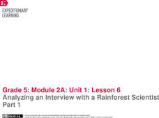 The end is in sight. Pupils complete an end of unit assessment, analyzing an interview with a rainforest scientist and then comparing and contrasting two informational texts. Next, they complete a self-assessment to reflect on their...