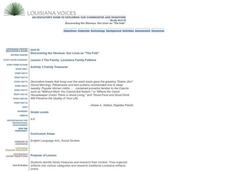 Learners explore and identify family treasures and research the history to each one. They also organize a variety of artifacts into various categories and research traditional Louisiana artifacts online. Each student draws inferences...