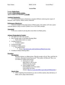 Third graders write their own haiku poem after a lesson on the history and format of a haiku. In this poetry lesson plan, 3rd graders write a haiku with the correct lines and symbols.