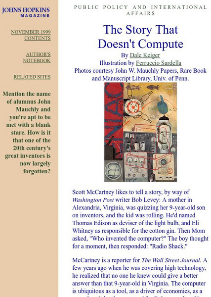 This site is an article contending that John Mauchly deserves the honor as being known as the inventor of the computer. Includes photos from John Mauchly's archives.