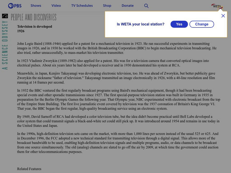 Pbs: People and Discoveries: Television Is Developed, 1926